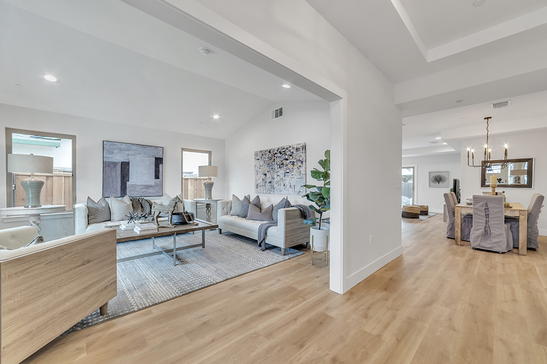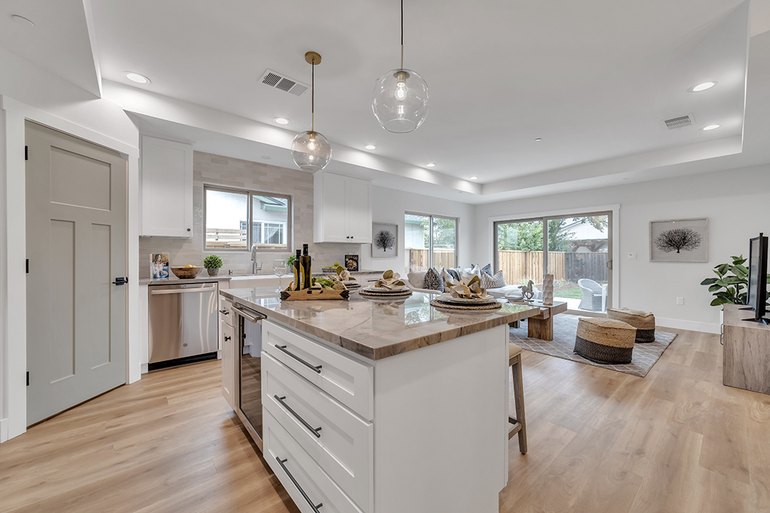 Donahe Drive was a large project. 800 square feet of living space was added along with a complete re-design from the ground up. Upgraded electrical panel, new fire sprinkler system and open layout. We are in LOVE with the Oyster Bay paint color on the interior doors. It really makes the home feel so modern and homey at the same time.